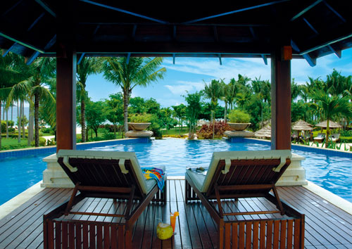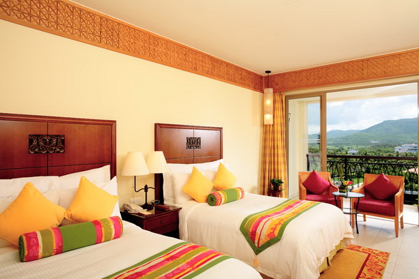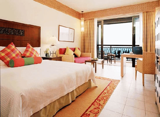 三亞萬豪度假酒店由世界知名公司W(wǎng)ilson & Associates設(shè)計。來自新加坡的設(shè)計師大膽自由的采用天然原石與暖色調(diào)木質(zhì)材料,結(jié)合當(dāng)?shù)孛匀说淖匀伙L(fēng)景和質(zhì)樸的風(fēng)土人情襯托出其自然、時尚的獨特風(fēng)格。酒店絕大部分客房均設(shè)有特大觀景陽臺,將潔白細軟的海灘、景色怡人的園林、優(yōu)美的山光水色、高爾夫球場景致一覽無遺?头績(nèi)部裝修舒適溫馨,從房間設(shè)施到小物品擺設(shè)都將感受到三亞萬豪度假酒店用“心”之處。三亞萬豪度假酒店引以為傲的水療中心“泉”座落在一片寧靜的園林中。五座相對獨立的豪華水療閣,透過花園更能遠眺美麗的南中國海景。精心準備的療程項目包括美顏護理、身體理療、按摩護理和精選水療套裝,為您從內(nèi)至外打造煥然一新的感覺。美酒佳肴在三亞萬豪度假酒店更是隨處可見。萬豪軒中餐廳傳統(tǒng)精篆的中式佳肴;全新江戶銀日餐廳舒適柔和的色彩與傳統(tǒng)的日式裝修風(fēng)格相得益彰,寬敞的座位空間營造舒適的就餐環(huán)境。伴隨著優(yōu)雅的日式音樂,品嘗具有現(xiàn)代感的日式美食,開放獨立的特色專區(qū)為您展示日式美食的制作過程;萬豪咖啡廳豐富的中西零點菜單和美味的自助餐;海韻風(fēng)情吧清涼飲料和迷人海景給予味覺和視覺無限享受。每間餐廳和酒吧都能滿足您挑剔的胃口。偏愛戶外的朋友也無需擔(dān)心,因為所有餐廳設(shè)有戶外雅座,讓您在享受美食的同時感受微微海風(fēng)的輕拂。得天獨厚的自然環(huán)境,令人垂涎的美酒佳肴,多姿多彩的娛樂活動,加上完善的會議設(shè)施,三亞萬豪度假酒店迅速成為舉辦各種活動和商務(wù)會議的最佳場所。擁有11間會議室,總面積達1250平方米。無柱豪華宴會廳,可分隔成五部分,另外六間會議室滿足中小型商務(wù)會議需求。高素質(zhì)的會議統(tǒng)籌隊伍,熱情悉心的宴會服務(wù),為會議圓滿召開提供最佳保障。親臨亞龍灣領(lǐng)略“天下第一灣”真正魅力所在,親臨三亞萬豪度假酒店體驗夢寐以求的悠閑假期。