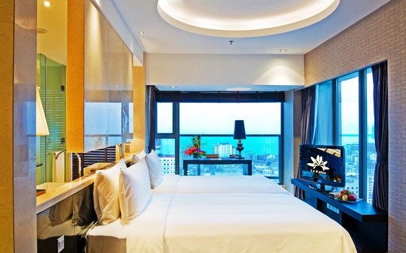 三亞黎客國(guó)際酒店座落于三亞市繁華商業(yè)圈,坐擁河西路、文明路和新風(fēng)路,毗鄰享譽(yù)島內(nèi)外的春園海鮮廣場(chǎng)及200畝生態(tài)城市公園,明珠廣場(chǎng)、三亞步行街等知名購(gòu)物中心以及三亞汽車總站近在咫尺,距三亞鳳凰國(guó)際機(jī)場(chǎng)僅30分鐘車程,步行5分鐘即可親臨享有聲譽(yù)的“椰夢(mèng)長(zhǎng)廊”---三亞灣,踩白沙細(xì)水,聽(tīng)椰風(fēng)海韻,看綠影婆裟,盡享三亞的天藍(lán)海碧。來(lái)自中法港臺(tái)新加坡的國(guó)際設(shè)計(jì)團(tuán)隊(duì),非凡手筆彰顯時(shí)尚溫馨兼具的獨(dú)特風(fēng)格。三亞黎客國(guó)際酒店獨(dú)高99米,總27層,擁有各類豪華客房。擁享都市內(nèi)唯一超5000㎡的巴厘島風(fēng)情叢林中庭和獨(dú)具特色的空中泳池。酒店配套措施完善,我是一只魚(yú)西餐廳、融廷中餐廳、西雅圖海鮮餐廳、小林吧、庭園酒廊等應(yīng)有盡有,還有具國(guó)際水準(zhǔn)的水療館,商務(wù)健身中心、會(huì)議室及臺(tái)灣名品店。這是一座優(yōu)雅奢華的城,更是一個(gè)精致溫馨的家,為您提供集養(yǎng)生、休閑、商務(wù)、度假為一體的最佳生活體驗(yàn)。